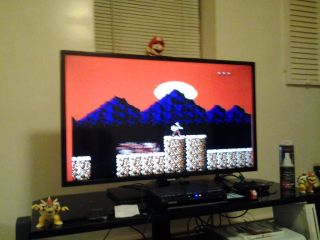 As part of moving into the new place, I’ve been looting my parents’ house for old stuff I can still use. One discovery turned out to be my original NES and collection of games; which tonight underwent a thorough disassembling, cleaning with rubbing-alcohol (system and carts) and reassembling. I still haven’t fully furnished the place – money is kinda tight right now, to be honest – but I’ll be springing for some kind of plug-extender so I can properly get the oldschool big-ass AC adaptor into my surge-protector (the NES was plugged into another, not-always-convenient outlet for this test run.