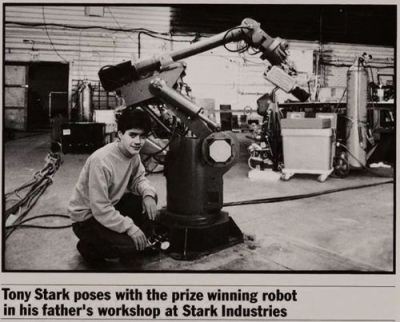 As in “Dummy,” the semi-self-aware robotic arm that Tony Stark keeps around for menial tasks, treats like the world’s dumbest robot dog but also seems to have some kind of sentimentality about (he’s one of the few things being taken away from the ruins of Stark’s house in IM3)? It’s already been established, after all, that Dummy is more-or-less the precursor to J.A.R.V.I.S. and all Stark’s other robot/robot-esque projects…