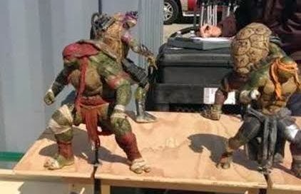 Via ComicBookMovie.com, these are apparently Michael Bay and Johnathan Liebesman’s new “TEENAGE MUTANT NINJA TURTLES;” looking about like you’d expect (i.e. like the originals but on HGH) with Raphael displayed most prominently. Don’t immediately hate, but will need some time to process: